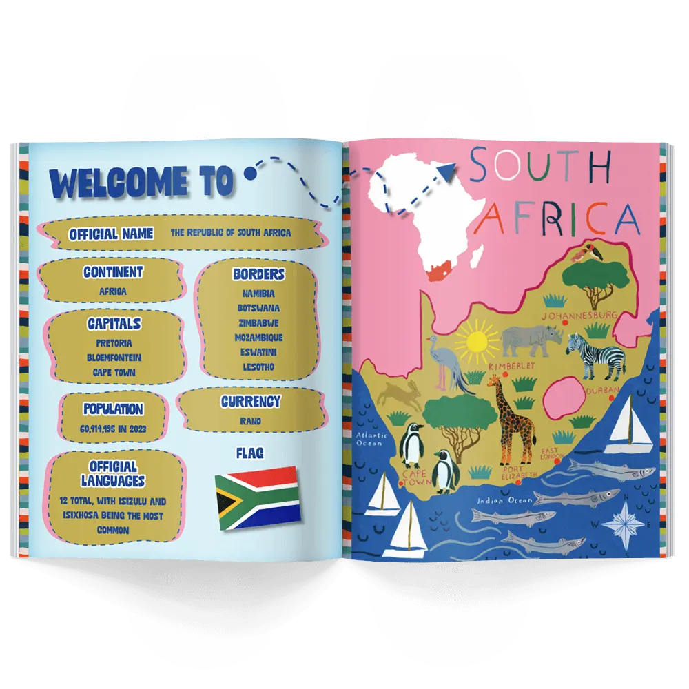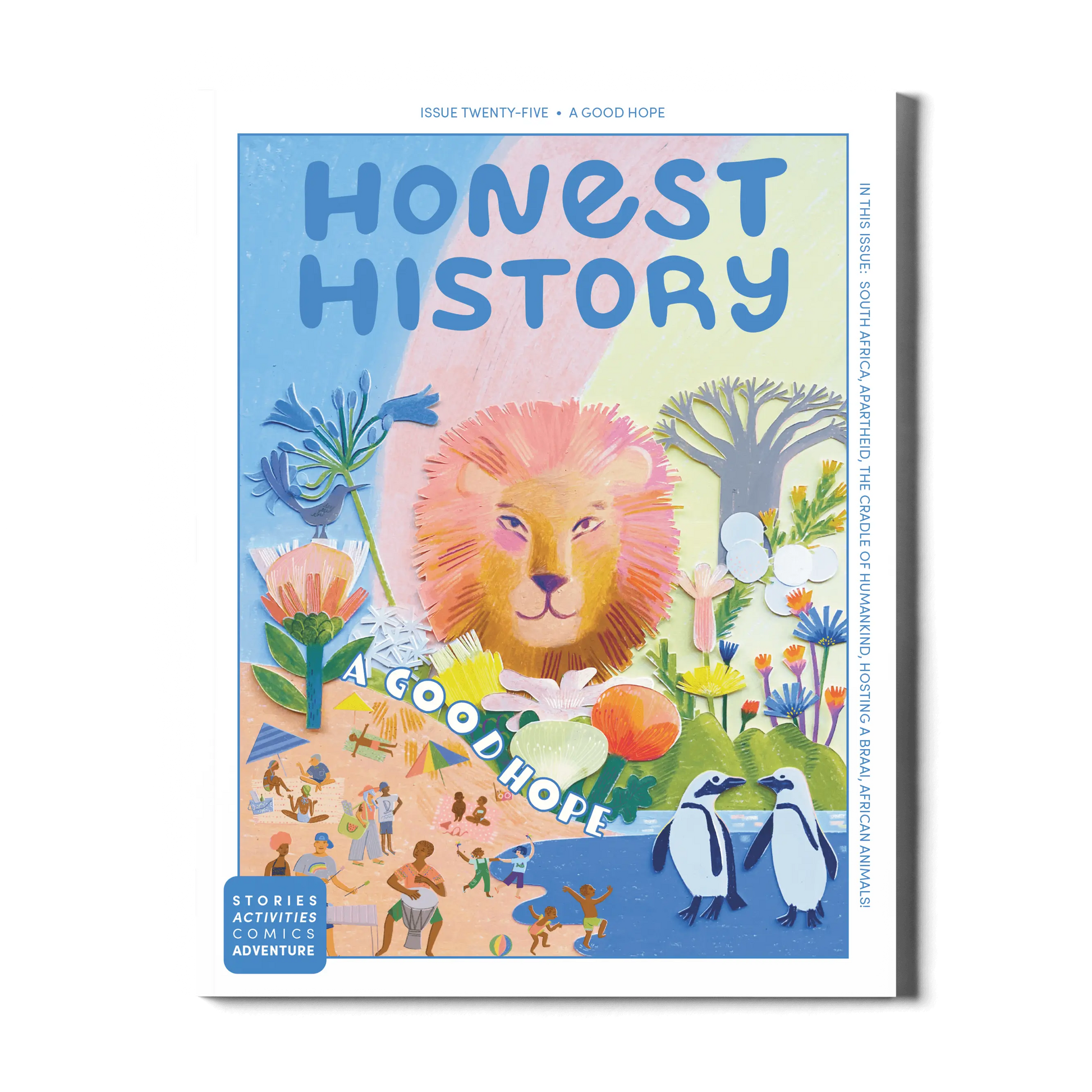 Dive into the history of South Africa in Issue Twenty-Five, A Good Hope. Kids will learn about the kingdoms of South Africa, the history of Apartheid, South African animals, and so much more. Let's go discover this incredible place known as the "Rainbow Nation."