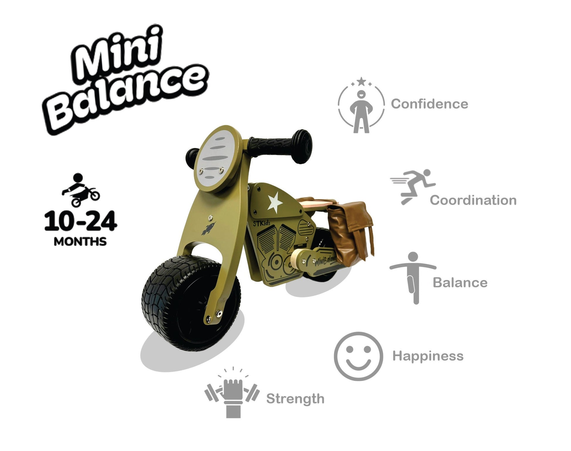 Turn and move with our MiniBalance ride-on! There is no toy that is more fun for developing coordination and motor skills! Easy to maneuver inside and out, the MiniBalance is the perfect first vehicle for your little one. Kids 10-24 months can jump on and roll! Robust and silent, this ride-on is made of resistant wood. Easy to assemble: just snap the bike's front fork into place and you're done.