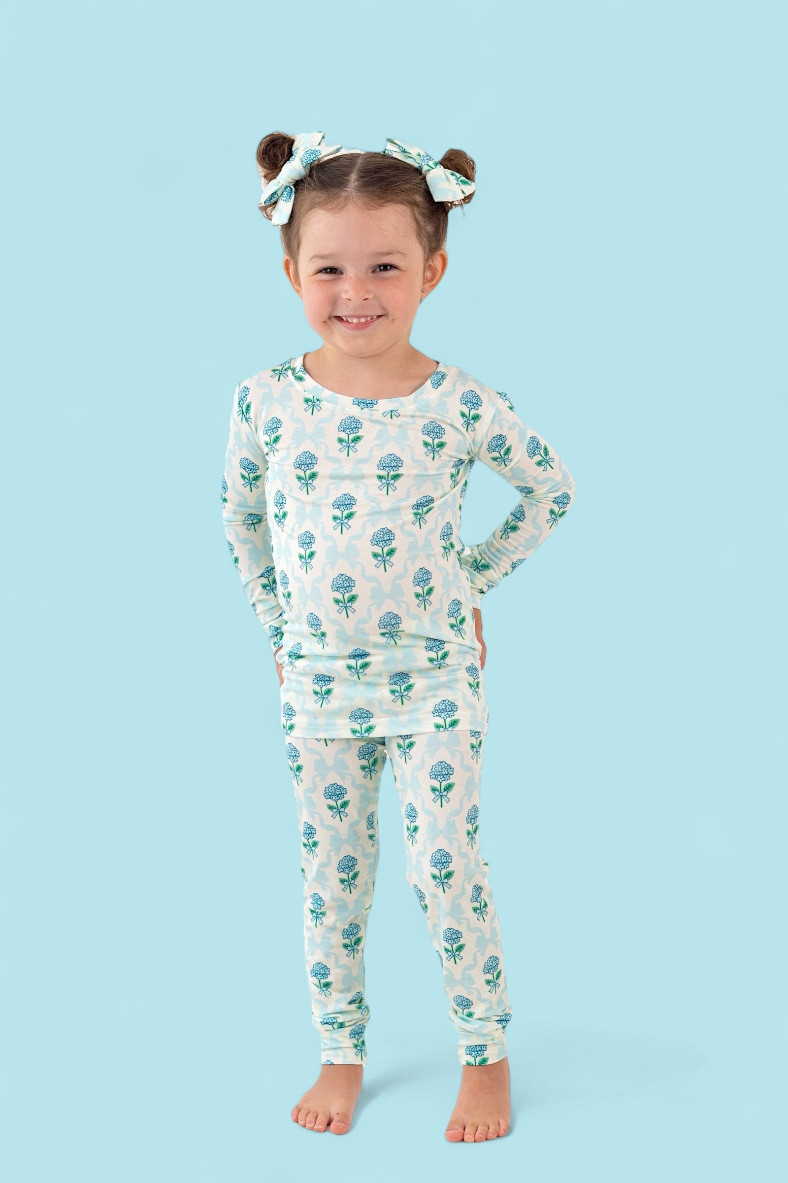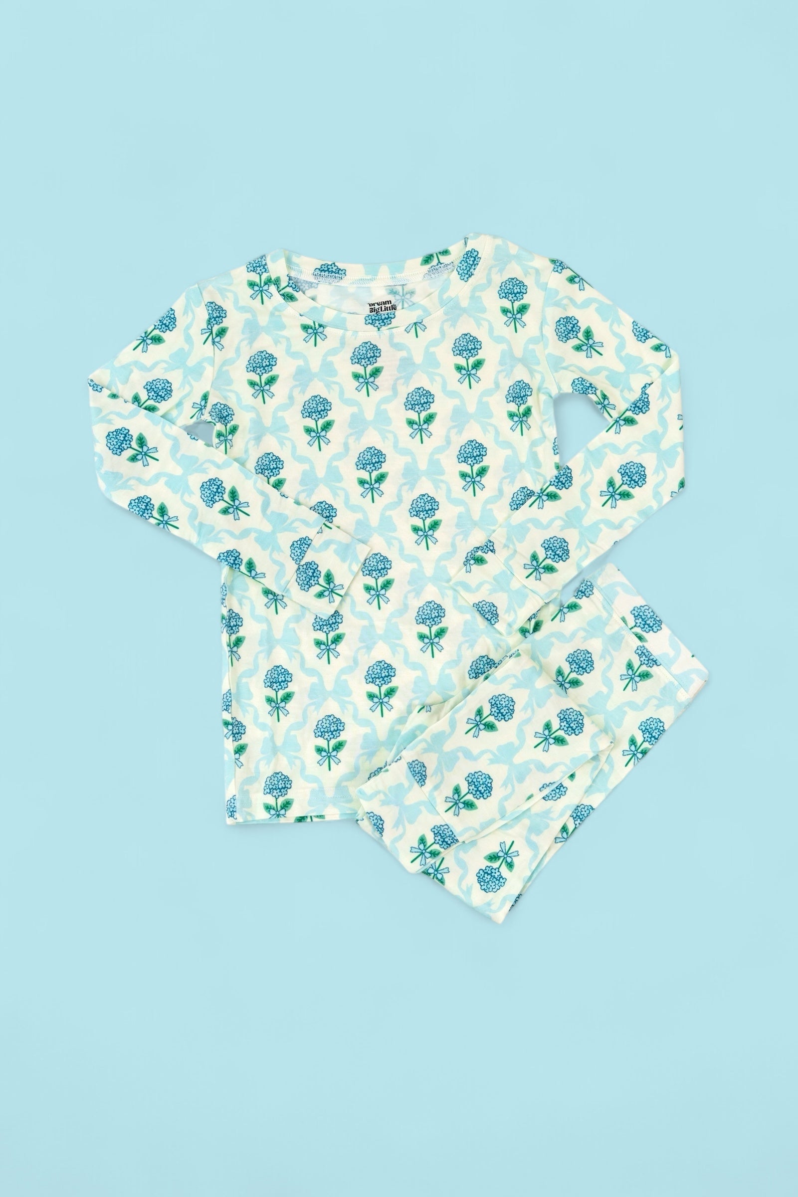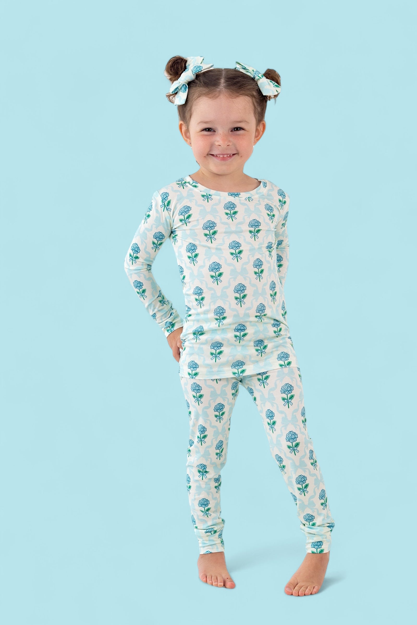 Drift off in style with our Blue Ribbon Blooms Dream Set, featuring dainty blue florals tied with soft ribbon bows on a creamy backdrop. This heirloom-inspired pajama set is both charming and practical—perfect for bedtime snuggles, early morning cartoons, or cozy playdates at home.