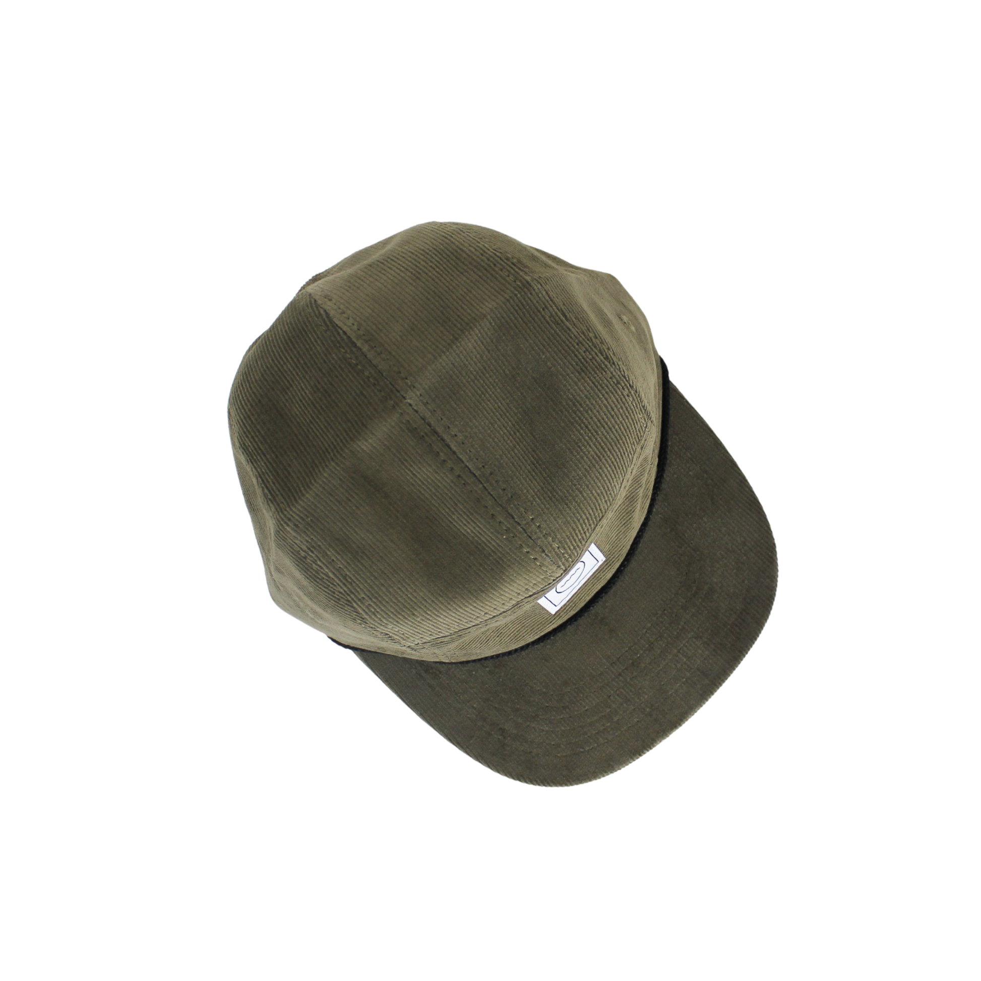This hat is made of soft corduroy and features a black rope where the crown meets the brim, adjustable velcro back, and fabric eyelets on the side panels.
