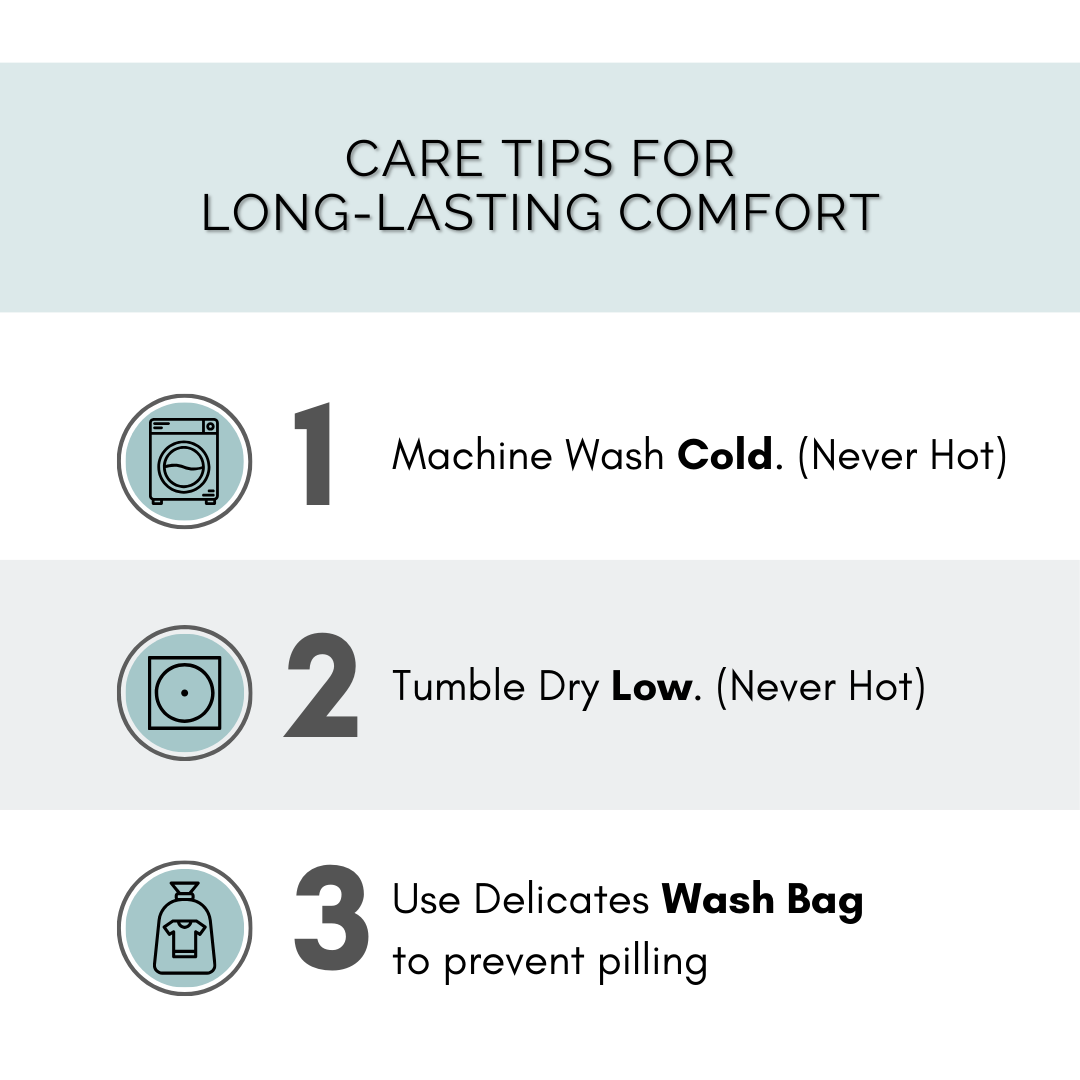 - To prevent pilling, wash in a garment bag (ideal), away from rough-textured fabrics, and open zippers