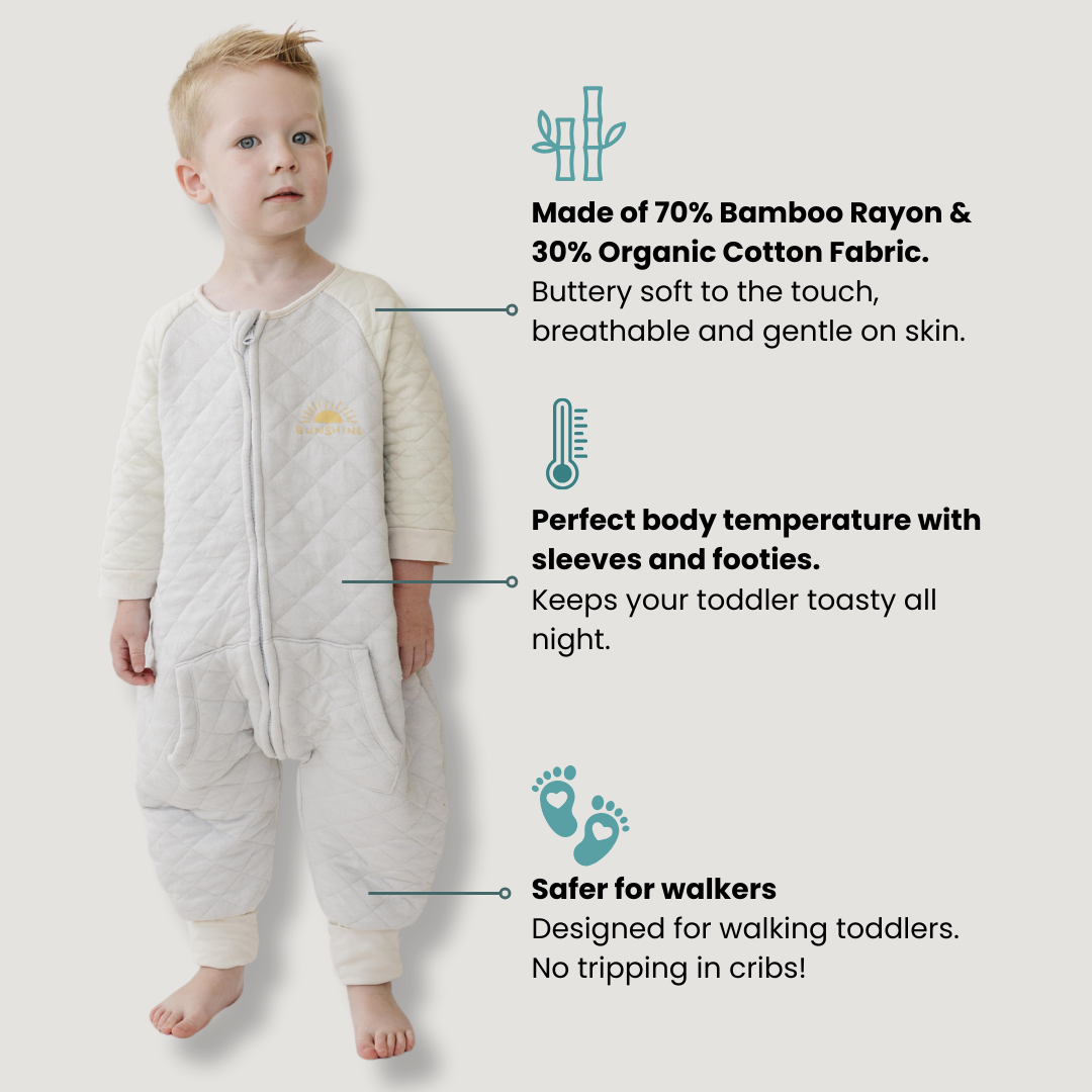 Is your child walking and standing up in the crib? Are you worried that your baby might trip on their sleep sack? Does your toddler kick blankets off at night and wake up from the cold at night?
