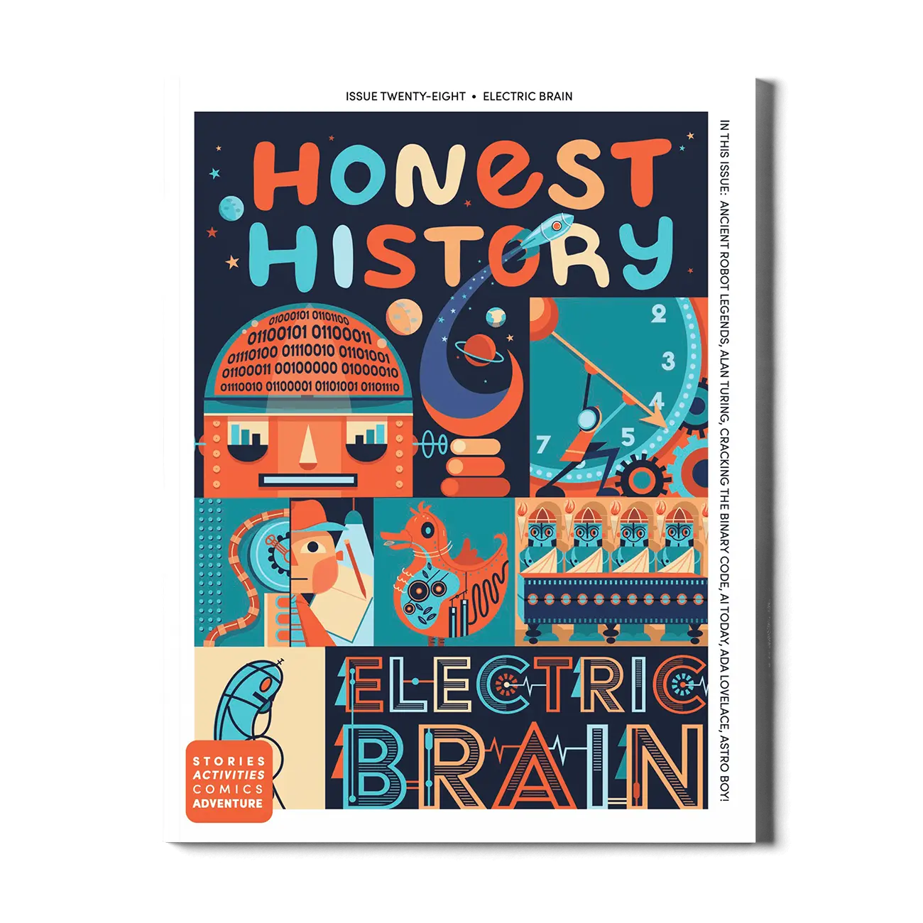 Discover the history of Robots, AI, and Technology in Issue Twenty-Eight, Electric Brain. Kids will learn about ancient robot legends, the binary code, Ada Lovelace, Alan Turing, and so much more. From Machines That Can Think to AI Today, this issue explores technology's greatest transformation with beautiful illustrations and engaging activities.
