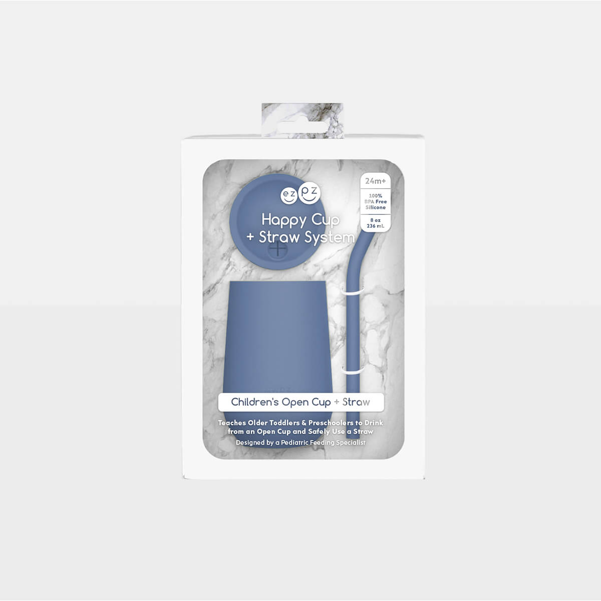 Learning to drink from a straw is an important developmental milestone that develops lip rounding and promotes speech development. The Happy Cup + Straw teaches older toddlers and preschoolers to safely drink from an open cup and straw independently.