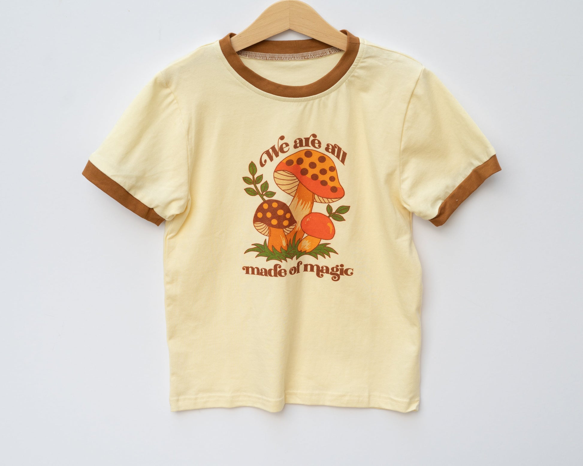 The Retro Mushroom Ringer Tee combines vintage charm with everyday ease, offering a whimsical style that’s perfect for babies, toddlers, and kids alike.