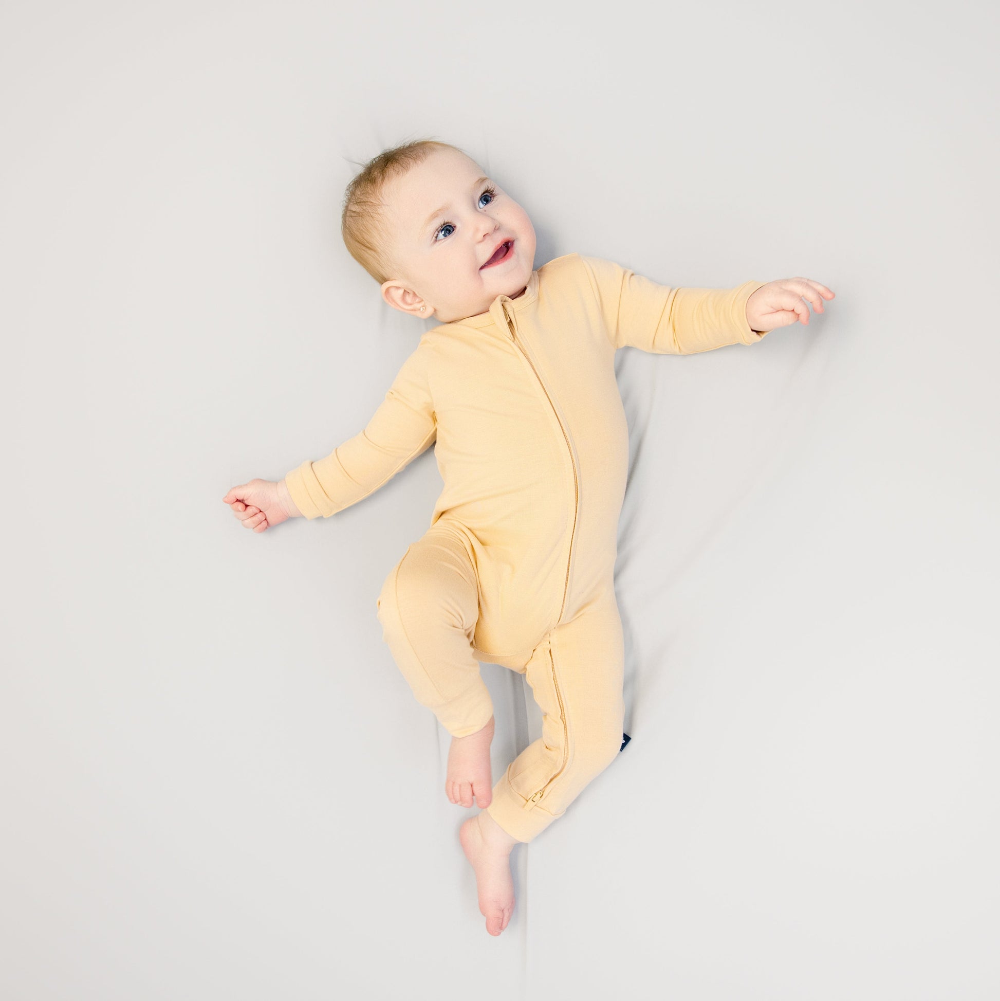 Larkspur Baby Zip Romper in Golden Sand