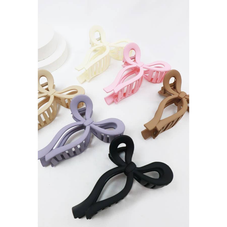 Matte Tone Bow Shape Hair Claw -Just the right size to suit any hair type, whether you have thick long hair or thin hair, it grips perfectly and stays on all day -Size: 2 3/4 W Inch x 4 Inch L -6