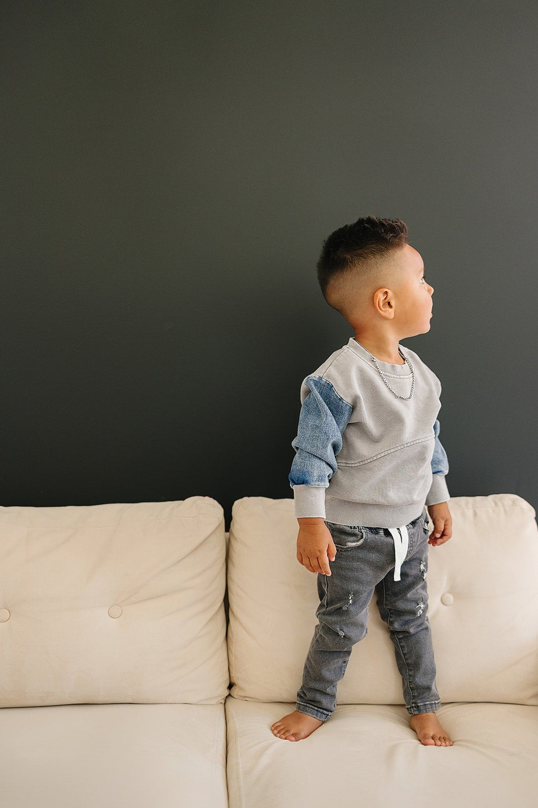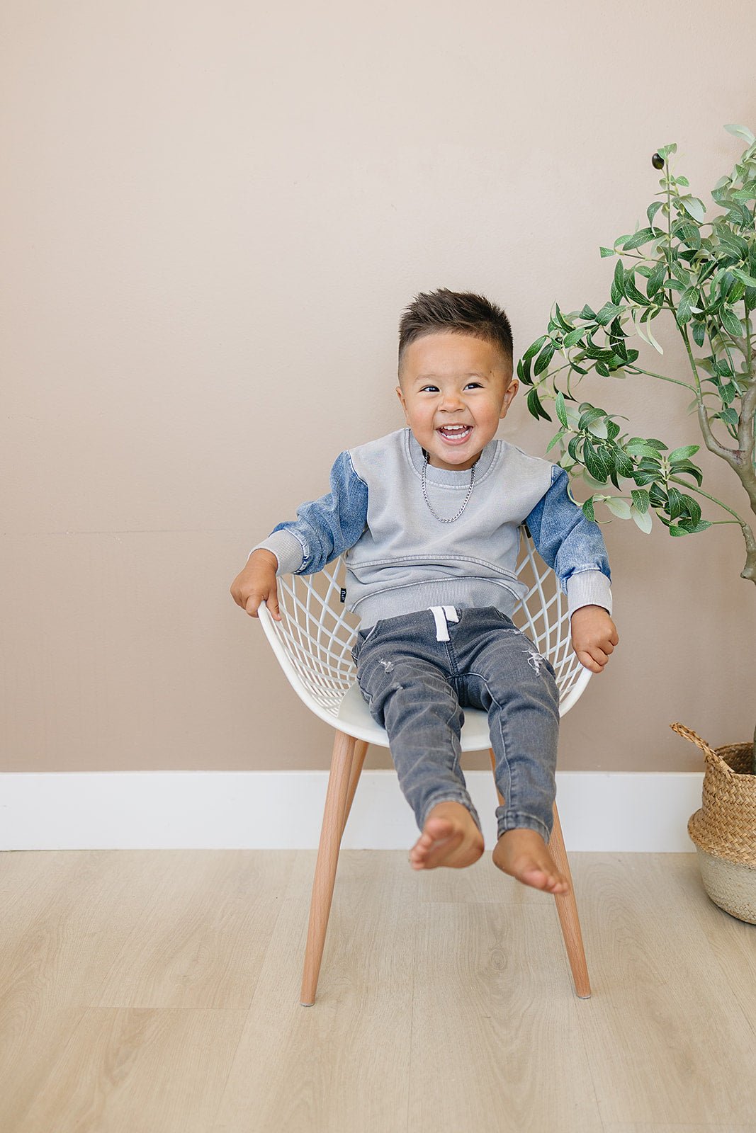 The Morgan Crew Neck is a playful twist on everyday style your little one will adore. Featuring an acid-washed body paired with cool denim sleeves, it creates a one-of-a-kind look that stands out. Soft ribbed cuffs and waist keep things cozy and comfy for all-day play. With subtle neutral colors, it’s easy to mix and match with any outfit—perfect for fun, effortless fashion.