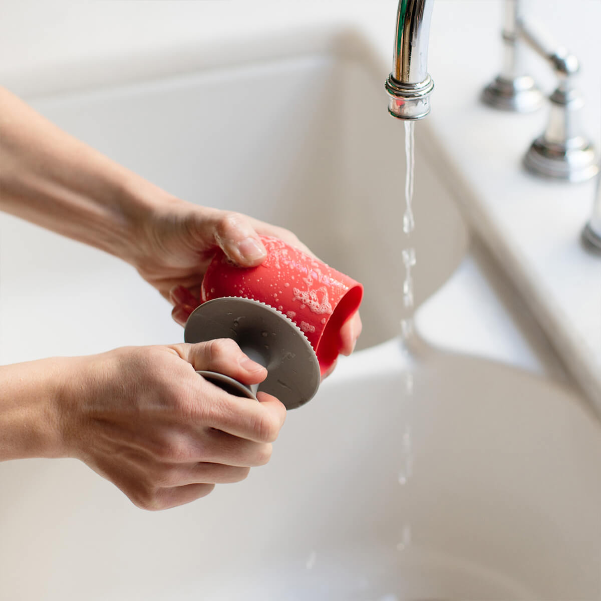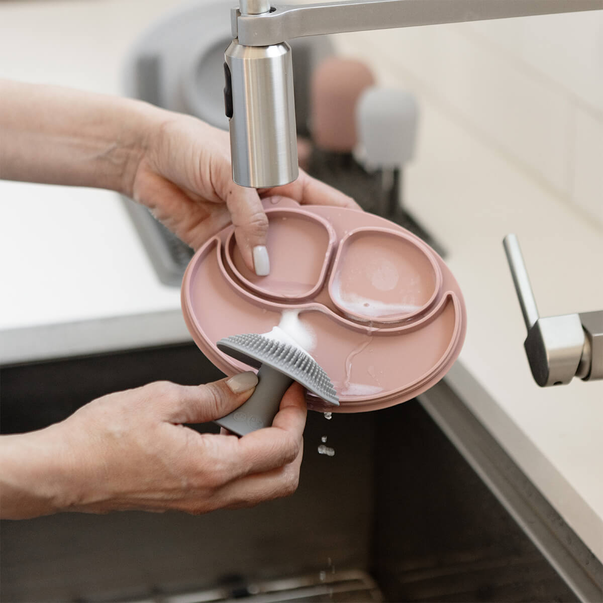 ezpz’s Mushroom Sponge is perfect for washing ezpz products, dishes, cookware, and feeding gear. Due to the silicone material, the Mushroom Sponge is hypo-allergenic, odor-resistant, and long-lasting.