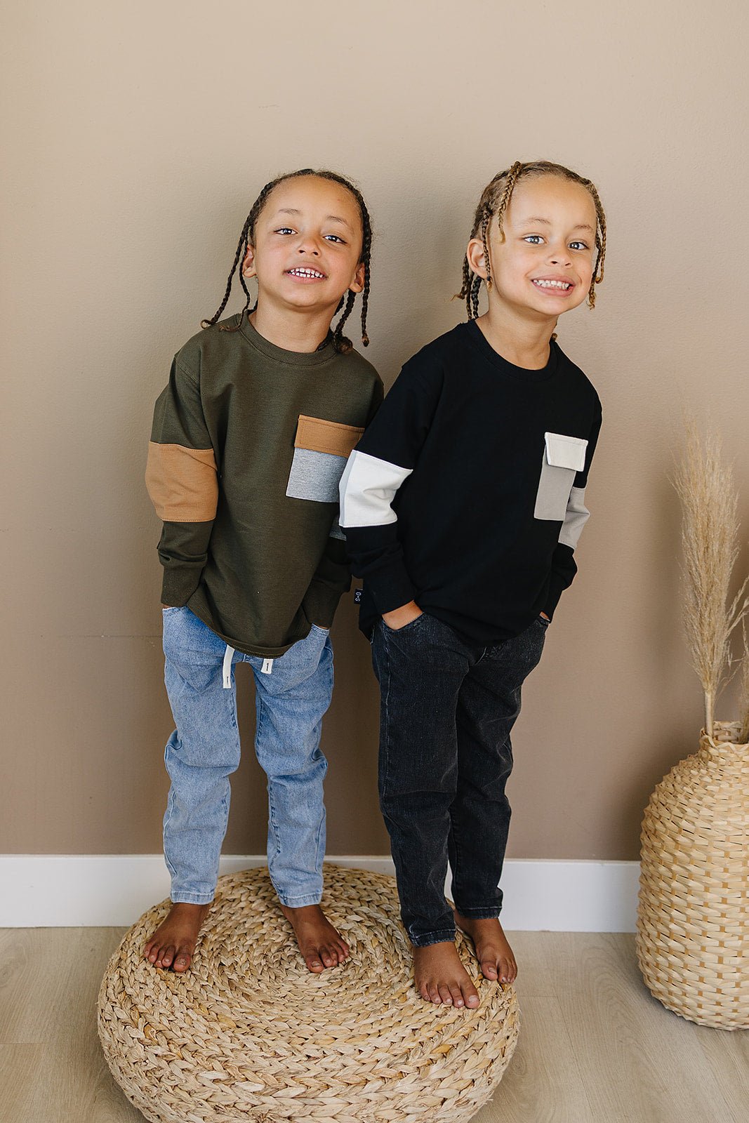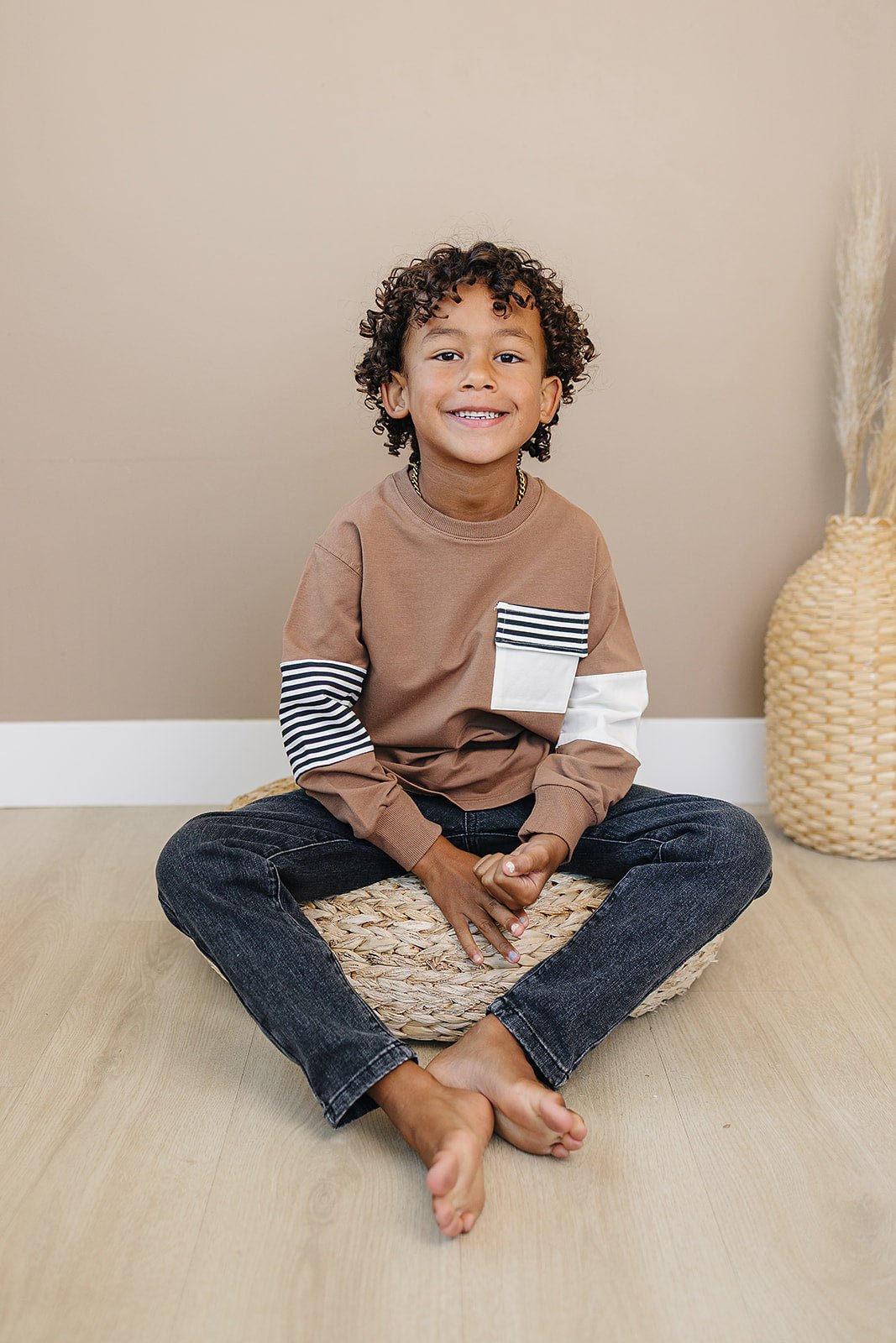 Bring a splash of fun to your little one’s wardrobe with the Nova Long Sleeve tee. Featuring unique color blocking and a playful front pocket with a flap, this top adds extra style to any outfit. The drop hem offers extra coverage and comfort, making it perfect for active days. Available in three versatile styles, it pairs effortlessly with any pair of jeans for endless casual cool looks your child will adore.
