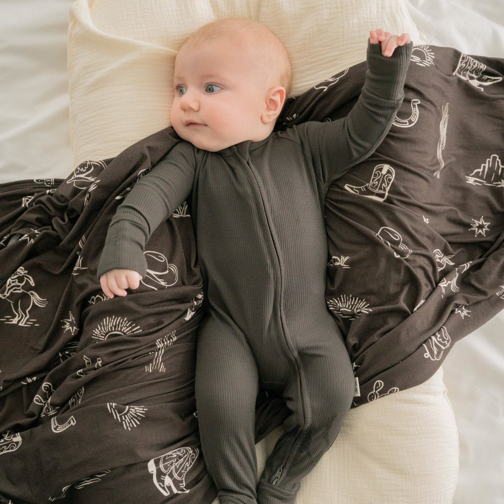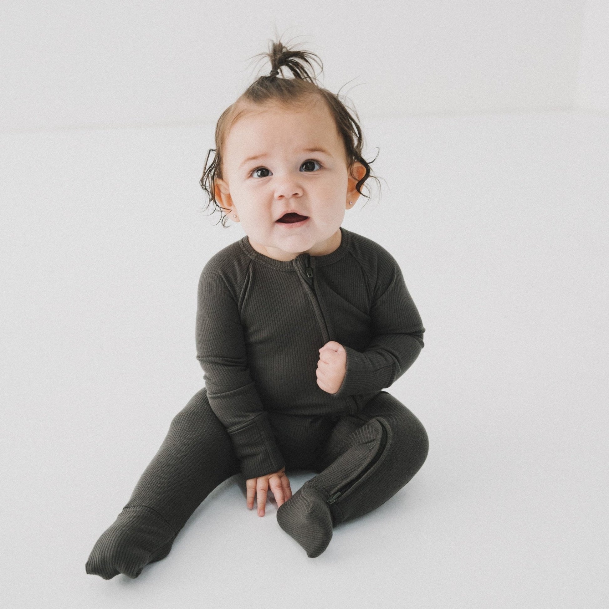 Snuggle-ready bamboo zipper romper with fold-over cuffs & two-way zipper. Perfect for newborn sleepers, pajamas & comfy footies.