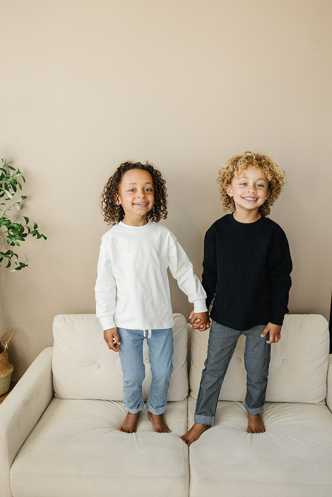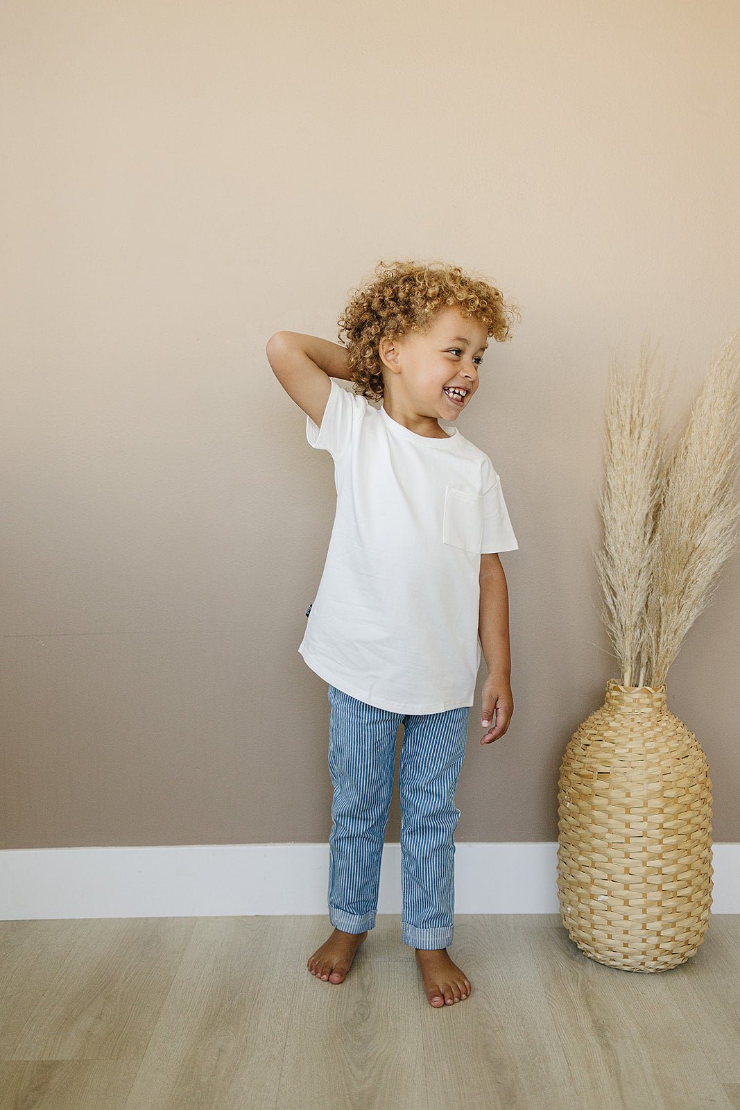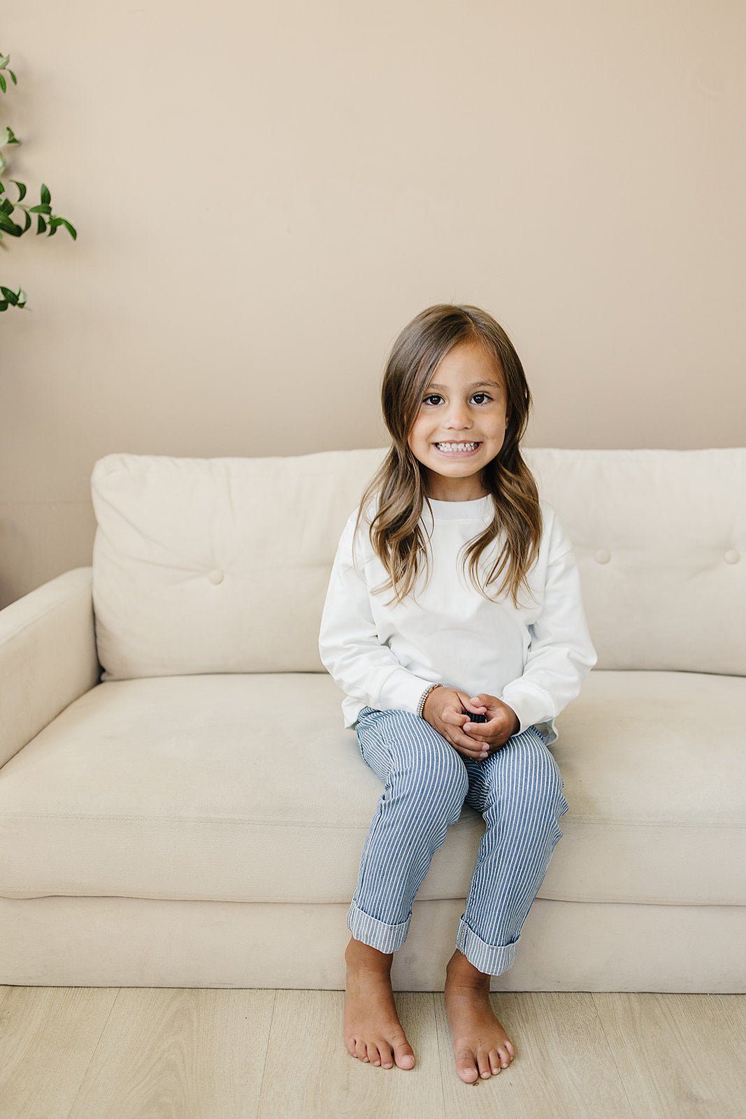 Keep your little one stylish and comfortable with our Parker Jeans. These adorable jeans feature a striped denim design with rolled cuffs for extra cuteness. The functional drawstring and elastic waist ensure the perfect fit. Pair them with a basic top for a complete and cute look!