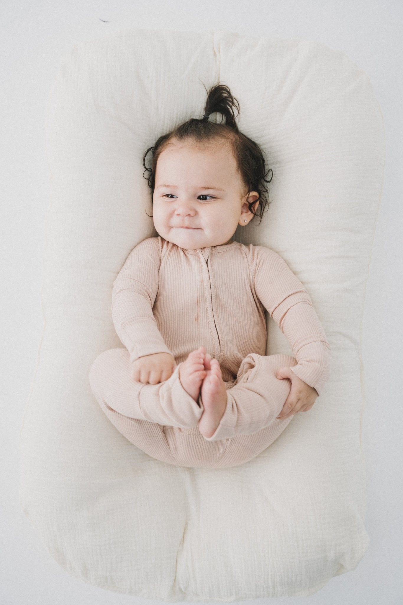 From nap time to playtime, our bamboo zipper romper with fold-over cuffs & two-way zipper keeps babies cozy. Sleepers & pajamas made for moments.