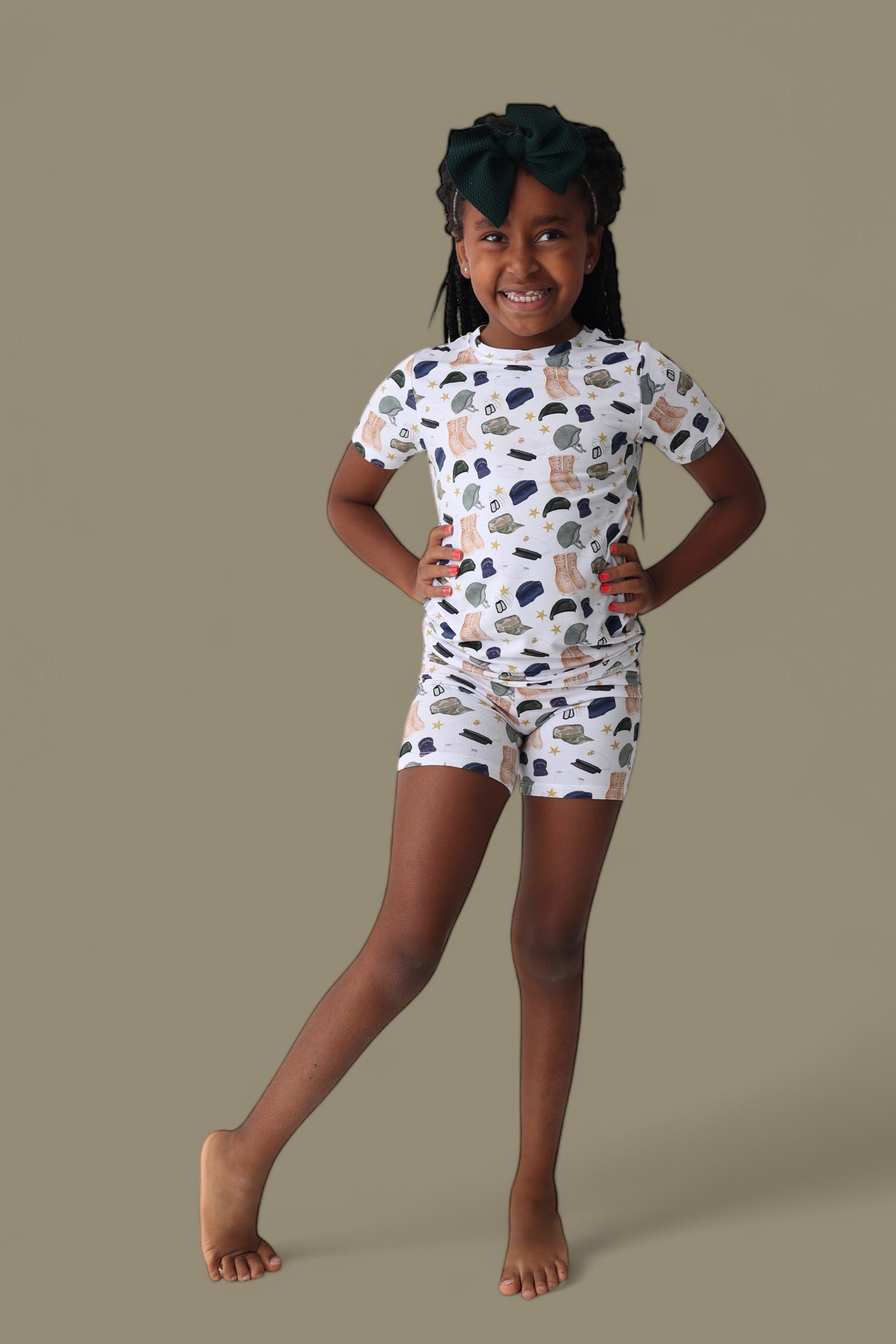 Perfect for both sleep and play, the Thank You for Your Service Dream Short Set is a must-have addition to your child's wardrobe. Treat them to the ultimate in comfort and style, and watch as they enjoy sweet dreams and playful days in these charming pajamas!